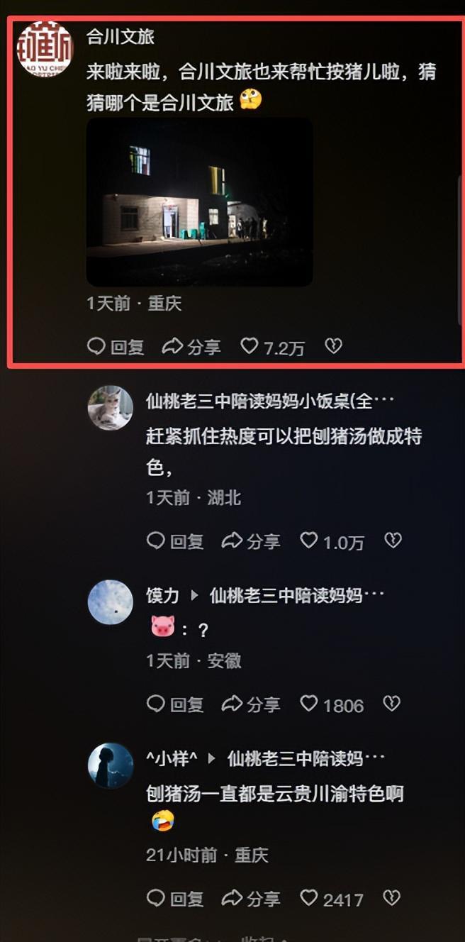 自从重庆合川的“呆呆”邀请全民举办杀猪宴,火爆全网之后,当地文旅直接赢麻了,央视记者直接去到现场报道。